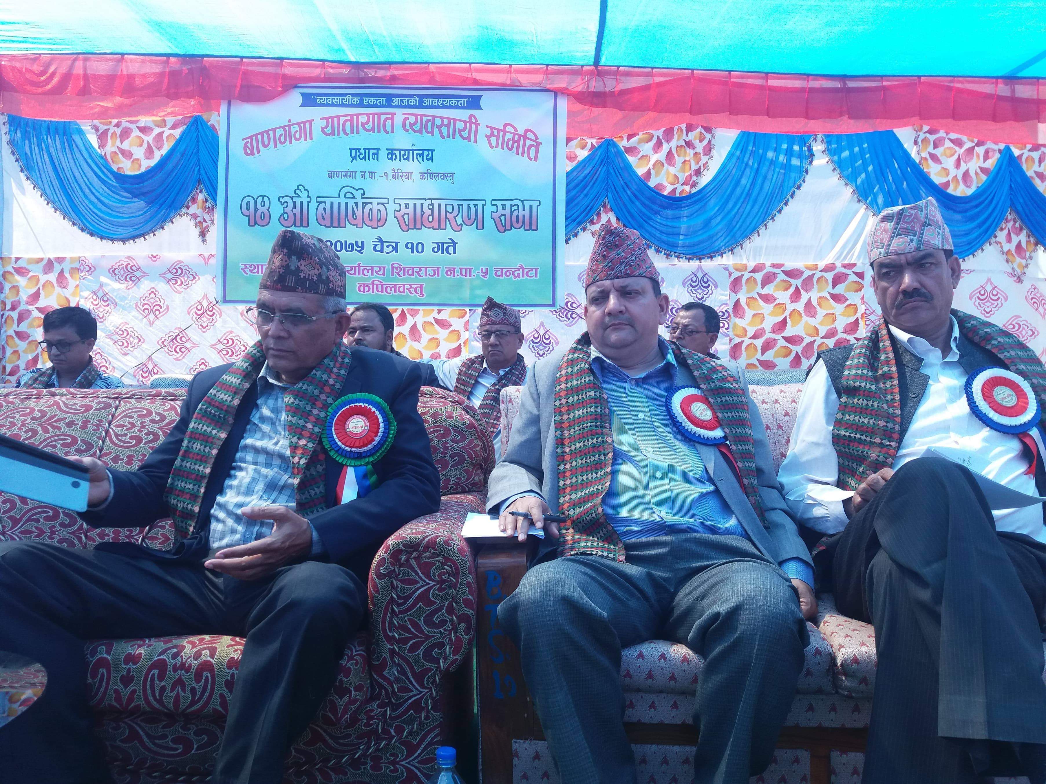 कृष्ण गैरे, कपिलवस्तु । वाणगंगा यातायात व्यवसायि समितिको १४ औ वार्षिक साधरण सभा सम्पन्न भएको छ । कपिलवस्तुको शिवराज नगरपालीका ५ चन्द्रौटामा रहेको साखा कार्यालयमा एक समारोहका विच सभा सम्पन्न भएको हो ।