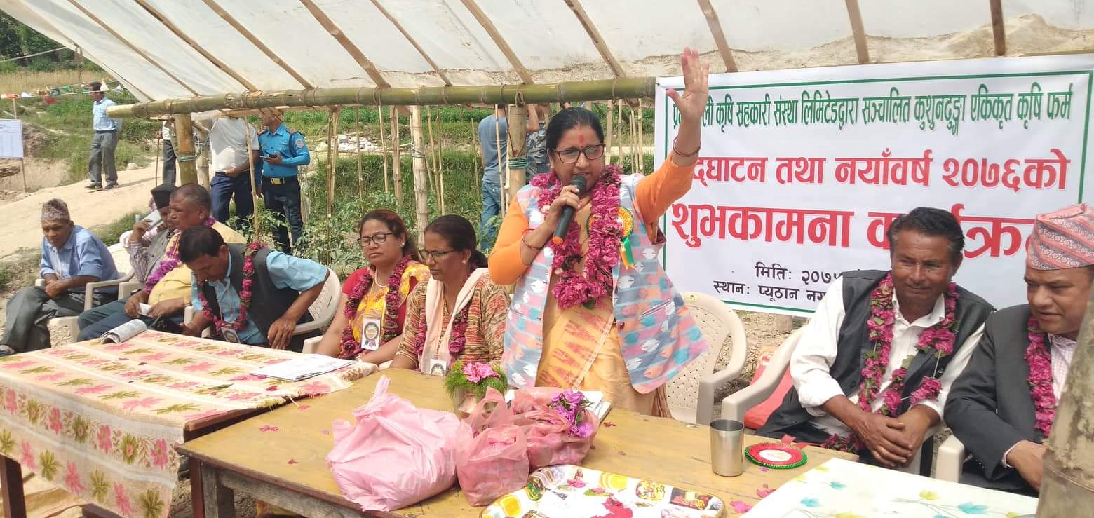 राम बहादुर बिश्वकर्मा,प्युठान । भूमि व्यवस्था, सहकारी तथा गरिबी निवारण मन्त्री आरती पौडेलले राज्यले लिएको समृद्धिको अभियान सफल पार्नका लागि सरकार र सहकारी सँगसँगै अगाडि बढ्नु पर्नेमा जोड दिएकी छन् । सहकारीमा संकलित पूँजीलाई उत्पादनमूलक क्षेत्रमा लगानी गरिने मन्त्री पौडेलको भनाई छ । प्युठान नगरपालिका ९ मरन्ठाना बुढादेबीमा रहेको प्राभाबशाली कृषि सहकारी सस्था लिमिटेडद्वारा संचालित एकीकृत कृषि फर्म र स्मार्ट गाउँ कार्यक्रम कार्यान्वयन समितिको कार्यालय उद्घाटन कार्यक्रममा उनले सहकारीको समग्र व्यवस्थापन गर्न आवश्यक कानून निर्माणको तयारी भइरहेको बताइन् ।महिला र युवालाई लक्षित गरी उद्यमशीलताको विकास गर्नु आवश्यक भएको उनको भनार्इ थियो । मन्त्री पौडेलले उपलब्ध साधन स्रोतको उपयोग गर्दै स्वरोजगारका कार्यक्रम अघि बढाउन सकिने बताइन् । “सहकारीमा संकलित सानो पूँँजी समाजको आर्थिक समुन्नतिका लागि महत्वपूर्ण माध्यम बनेको छ,” उनले भनिन्, “यसबाट आपसी समझदारी एवं सामूहिक भावनाको विकास हुँदै गएको छ ।”स्थानीय तह र सहकारीबीच समन्वय आवश्यक भएको औल्याउँदै उनले व्यवहारिकताका आधारमा सहकारीका लागि कर निर्धारण गर्नुपर्ने बताइन् । जग्गाको खण्डीकरणलाई निरुत्साहित गर्दै उत्पादनशील बनाउन आवश्यक रहेको उनको भनाइ थियो । उत्पादनमूलक क्षेत्रमा पुँजी लगाई उत्पादनलाई बृद्धि गरी प्रदेशलाई आत्मनिर्भर र समृद्ध बनाउनुपर्नेमा जोड समेत दिइन। प्रदेशको समृद्धिको आधार कृषि नै भएको भन्दै मन्त्री पौडेलले उत्पादन वृद्धिका लागि सरकार, नीजि क्षेत्र र सहकारी संस्था मिलेर अघि बढनुपर्नेमा जोड दिईन । सहकारी मार्फत उत्पादन वृद्धि गरेर प्रदेशलाई आत्मनिर्भर बनाउने दिसामा प्रदेश सरकार अघि बढेको उनको भनाई थियो। मन्त्री पौडेलले प्रदेशसभामा टेवुल भइसकेको सहकारी ऐन छिटै पारित भई कृषि क्षेत्रमा क्रान्ति नै ल्याउने दावी समेत गरिन।