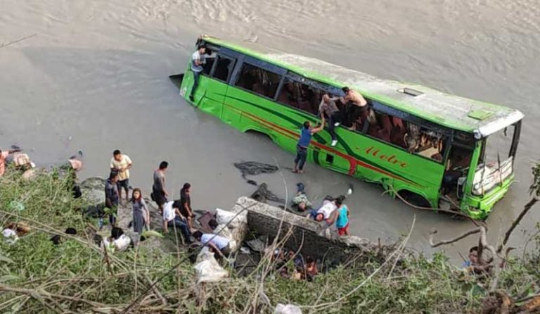 काठमाडाैँ । धादिङको आदामघाट नजिक बन्छेटारबाट झापाबाट आएको बस त्रिशुली नदीमा बस खस्दा मृत्यु हुनेको संख्या ७ पुगेको छ ।
