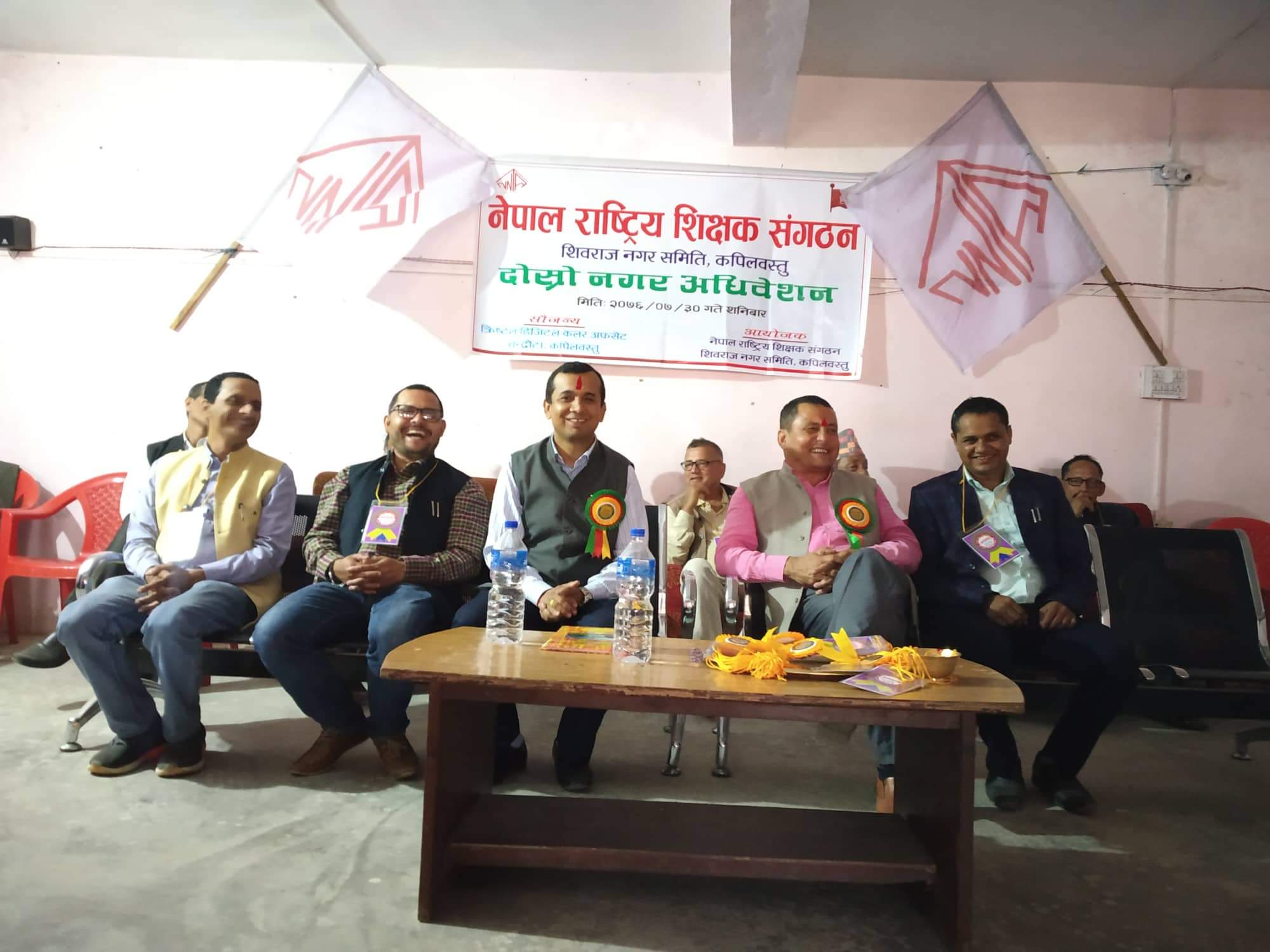 माधव बेल्वासे, कपिलवस्तु (चन्द्रौटा) नेपाल राष्ट्रिय शिक्षक संगठन शिवराज नगर कमिटिमा गिरी प्रसाद गैरेको नेतृत्वमा नया कमिटि गठन भएको छ । जसको उपाध्यक्षमा प्रकाश अधिकारी, महिला उपाध्यक्षमा शान्ता जिसी,सचिवमा गोपाल भाट,सह सचिवमा भक्ति पौडेल कोषध्यक्ष ओतीराम ओली सह कोषाध्यक्षमा कमला शर्मा सहित २१ सदस्य समिति चयन भएको छ ।सनिवार शिवराज नगरपालिका वडा नं. ५ को सभाहलमा आयोजित उक्त अधिवेशनले समिति चयन गरेको हो । कार्यक्रममा वोल्दै प्रदेश सभा सदस्य अर्जुन कुमार केसीले शिक्षक राष्ट्रको गहना भएको वताउनुभयो । विद्यार्थीको भविष्य बनाउने जिम्मा शिक्षकको हातमा रहेको समेत जिकिर गर्नभयो । शिवराज नगरपालिका भित्र रहेका शिक्षकहरुको क्षमता अभिवृद्धि सगै शिक्षामा गुणस्तरीय हुनुपर्ने तर्क राख्नुभयो । अधिवेशनले सक्षम व्यक्तिलाई छनोट गर्ने र सफल कार्यकालको शुभकामना समेत दिनुभयो ।नेपाल राष्ट्रिय शिक्षक संगठनका जिल्ला अध्यक्ष रमेश पन्थीले शिक्षकहरु अव एकजुट भएर अधिकार र समस्याका समाधान तर्फ अग्रसर हुनुपर्ने वताउनुभयो । शिक्षकहरु अधिकारको लागी लड्ने नेपाल राष्ट्रिय शिक्षक संगठन मात्र रहेकोले यसमा सवै समावेश हुनुपर्ने जनाउनुभयो । कार्यक्रममा शिवराज नगरपालिका वडा न ३ का अध्यक्ष टेकलाल सापकोटा,वडा न ९ का अध्यक्ष जिवन खडका,वडा न १ का अध्यक्ष जगत जिसि,राष्ट्रिय मानव अधिकार प्रतिष्ठानका अध्यक्ष विष्णु खतिवडा लगाएतको सहभागीता रहेको थियो । कार्यवाहक अध्यक्ष प्रकाश अधिकारीको अध्यक्षतामा भएको उक्त कार्यक्रको संचालन गोपाल भाट र स्वागत मन्तव्य शान्ता जिसीको रहेको थियो ।