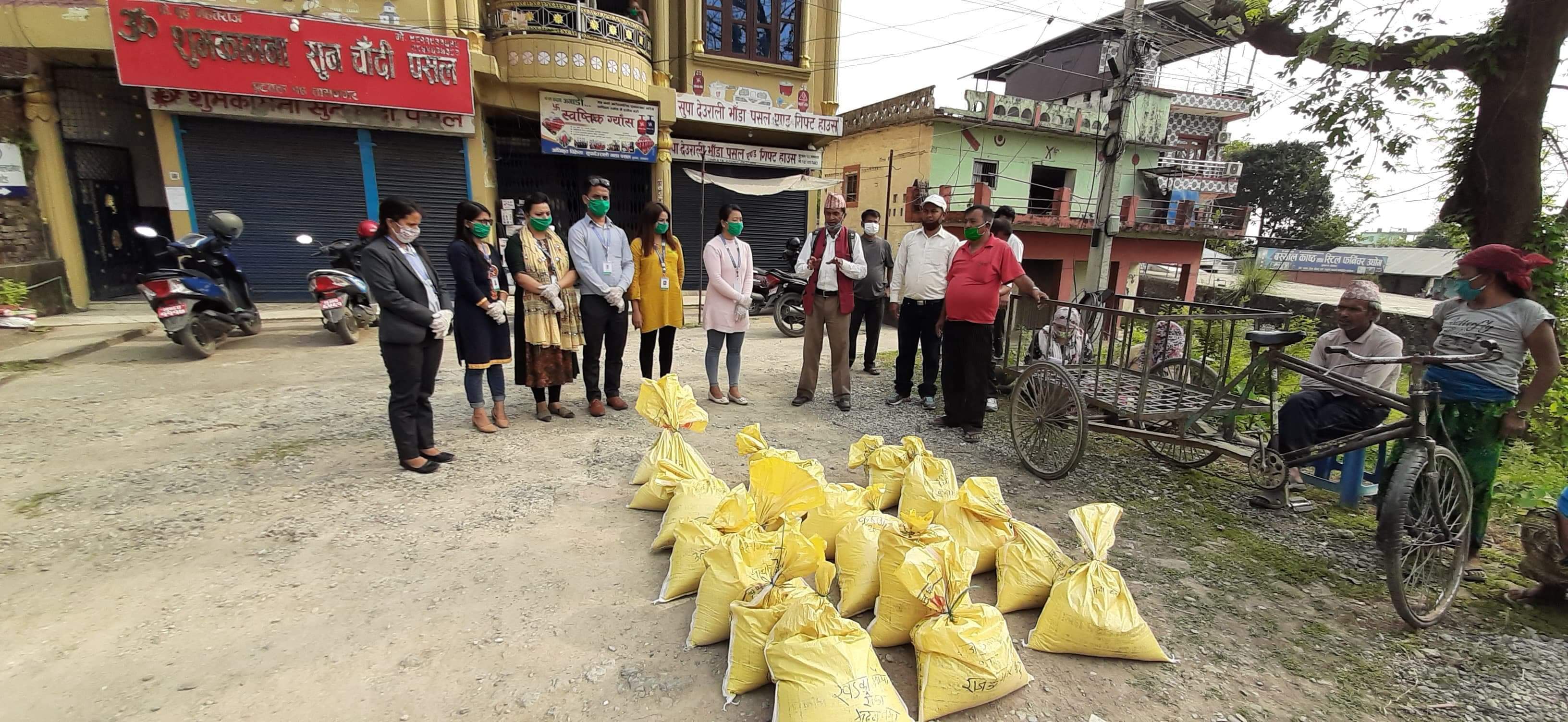 बुटवल । तिनाउ मिसन डेभलप्मेन्ट बैक लिमिटेड तामनगर शाखाद्वारा खाद्यान्न सामाग्री वितरण गरिएको छ । बुटवल १२ तामनगर स्थित चौराह टोल र समावेसि टोलका विपन्न परिवारलाई लक्षीत गरी बैकले सो राहत सामाग्री वितरण गरेको हो । बुटवल १२ का वडाध्यक्ष दुर्गाप्रसाद सुवेदी र बैकका स्टाफको उपस्थितीमा दुवै टोलामा रहेका १८ विपन्न घरपरिवारलाई ५० केजि चामल, २ कार्टुन तेल र २५ केजी दाल हस्तान्त्रण गरिएको तिनाउ मिसन डेभलप्मेन्ट बैंक लिमिटेड तामनगर शाखा प्रमुख निशा थापाले जानकारी दिनुभयो ।कोरोना भाईरसको यस विषम परिस्थितीमा लकडाउनका कारण ज्यालादारीमा काम गरि खाने विपन्न परिवारलाई थोरै भएपनि राहत पुगोस भन्ने उद्येश्यका साथ खाद्यन्न सामाग्री वितरण गरिएको शाखा प्रमुख निशा थापाले जानकारी दिनुभयो । साथै आगामी दिनहरुमा पनि लक्षीत वर्गलाई सहयोग गरि रहने उहाँको भनाई थियो ।