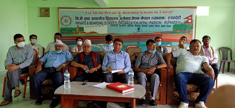 मासिक तलबमानको कम्तिमा २५ प्रतिशत नघट्ने गरी पारिश्रमिक उपलब्ध गराउने निर्णय उनीहरूले गरेका हुन् । निजी तथा आवासीय विद्यालय अर्गनाइजेसन (प्याब्सन) रुपन्देहीको सोमबार भएको भेलाले शिक्षकहरुलाई आंशिक तलब दिने निर्णय गरेको अध्यक्ष लेखनाथ पौडेलले जानकारी दिए । लकडाउनका कारण चैत महिनादेखि विद्यालय बन्द भएपछि तलब नपाएका शिक्षकहरुको आर्थिक अवस्थालाई मध्यनजर गर्दै हाललाई राहतस्वरूप २५ प्रतिशत भन्दा कम नहुने गरी तलब उपलब्ध गराउने निर्णय गरिएको अध्यक्ष पौडेलले बताए । बाँकी तलबबारे आगामी अवस्था र सरकारको निर्णय अनुसार पछि गरिने पनि उनले बताए ।“लामो समयदेखिको लकडाउनले शुल्क उठाउन नपाएका कारण निजी विद्यालयहरु आफै आर्थिक संकटमा भए पनि शिक्षक कर्मचारीहरुको स्थिति झन् नाजुक बनेकाले राहतस्वरुप तलबमानको कम्तिमा २५ प्रतिशत नघट्ने गरी पारिश्रमिक उपलब्ध गराउन सम्बन्धित विद्यालय व्यवस्थापनलाई अनुरोध गर्दछौं” अध्यक्ष पौडेलले भने ।
