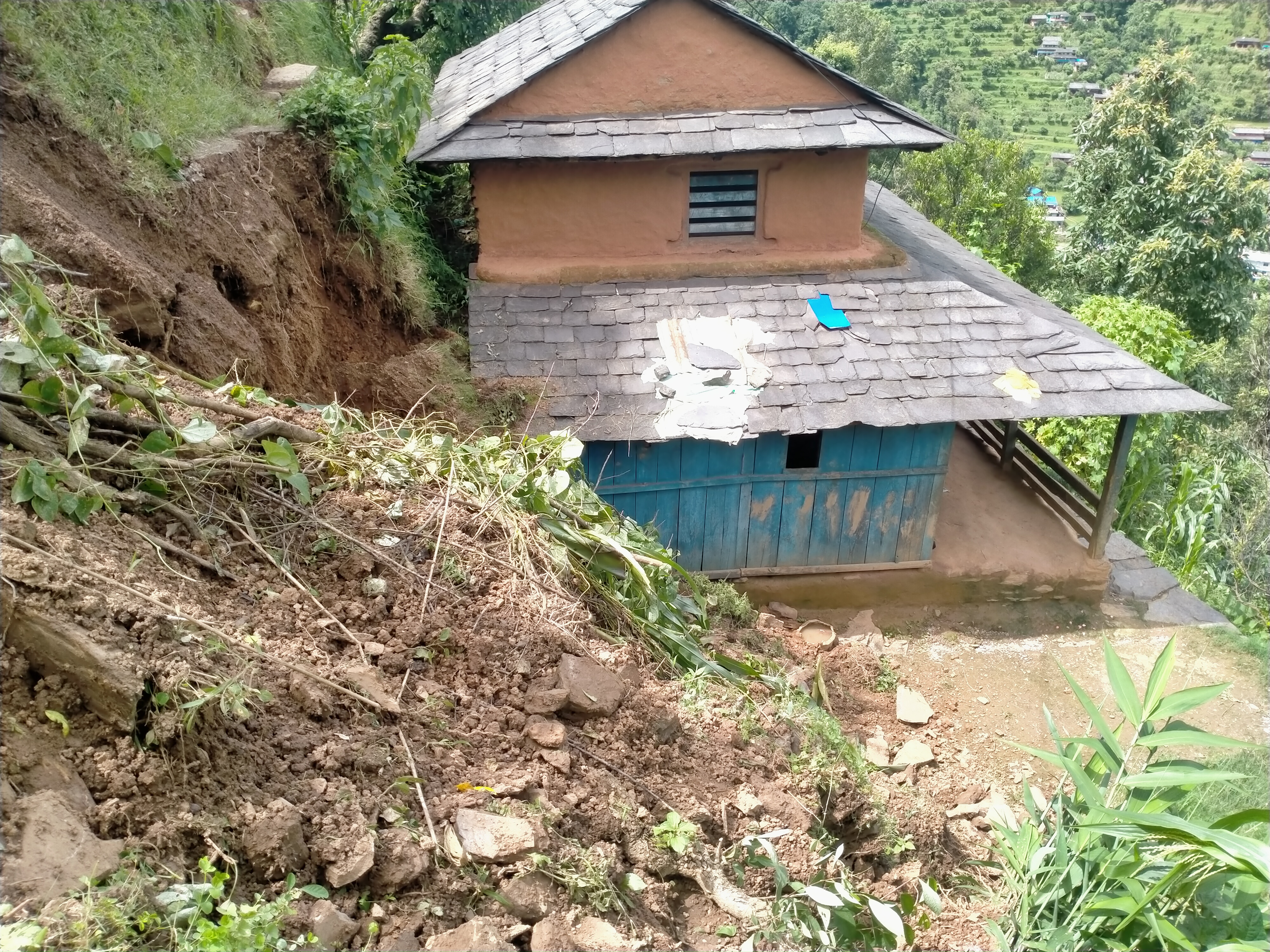 घरको आँगनबाट पहिरो खसेपछि स्थानिय लक्ष्मण सुनार, मन बहादुर विक र अंकित विकको घर जोखिममा परेको वडा अध्यक्ष सुवेदार टिका बहादुर थापाले जानकारी दिनुभयो । लक्ष्मण सुनारको केही हप्ता पहिले साउदी अरबमा निधन भएको थियो । लक डाउनको कारण शव समयमै ल्याउन नसकिएको र अहिले शव नेपाल लिएर अन्तिम संस्कारपछि परिवार काज क्रियामा बसेको वडा अध्यक्ष थापाले बताउनु भयो ।
