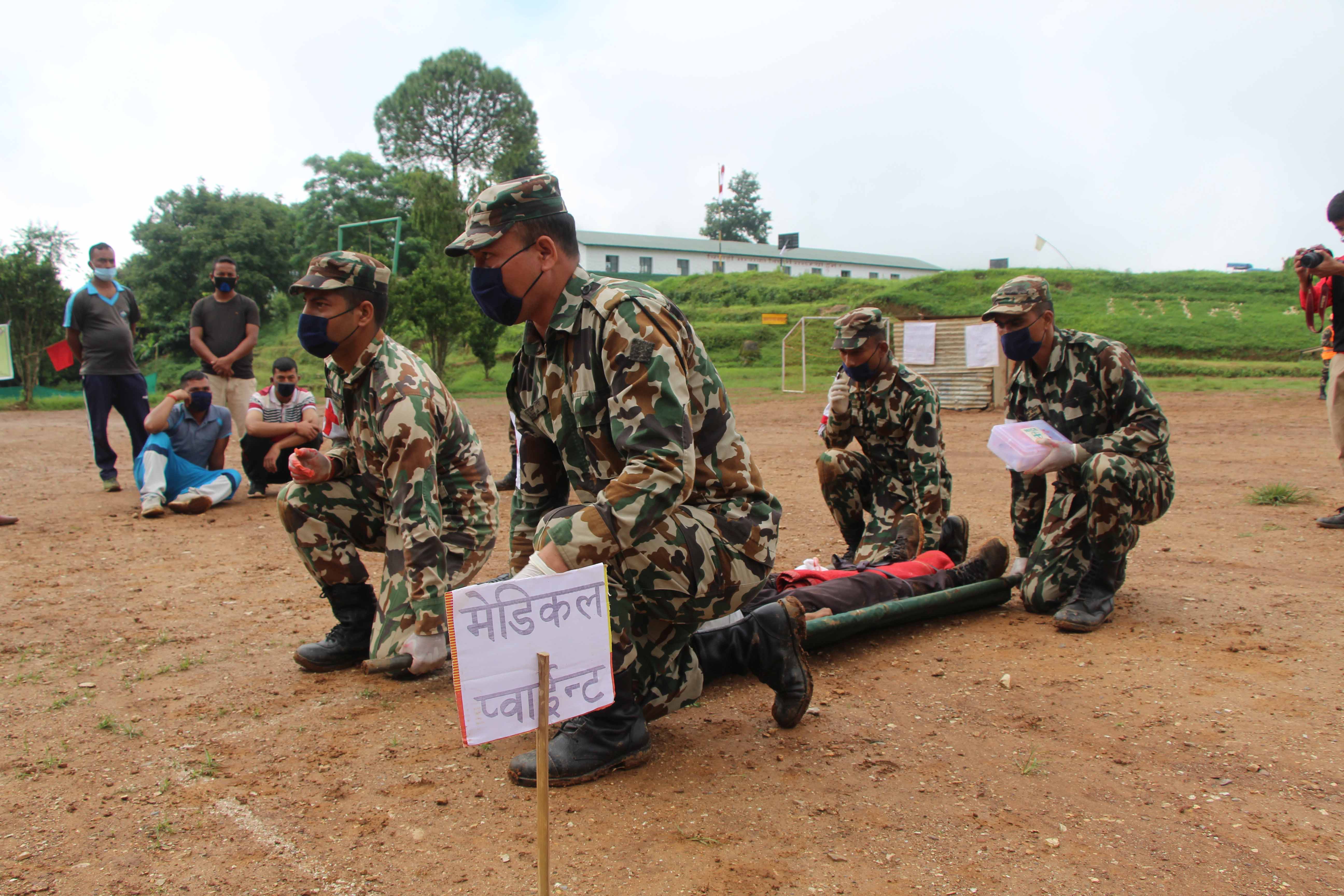 विपद पूर्व तयारी स्वरुप सेनाले खोज तथा उद्दार, प्राथमिक उपचार र आपत्कालीन स्वास्थ्य सम्बन्धी कृत्रिम पूर्व अभ्यास गराइएको थियो । बाढी पहिरो, आगजनी लगायतका प्राकृतिक प्रकोपको कृत्रिम घटना बनाएर खोज, उद्दार, प्राथमिक उपचार र आपतकालीन स्वास्थ्य सम्बन्धी विपद पूर्वतयारी अभ्यास गराइएको हो ।