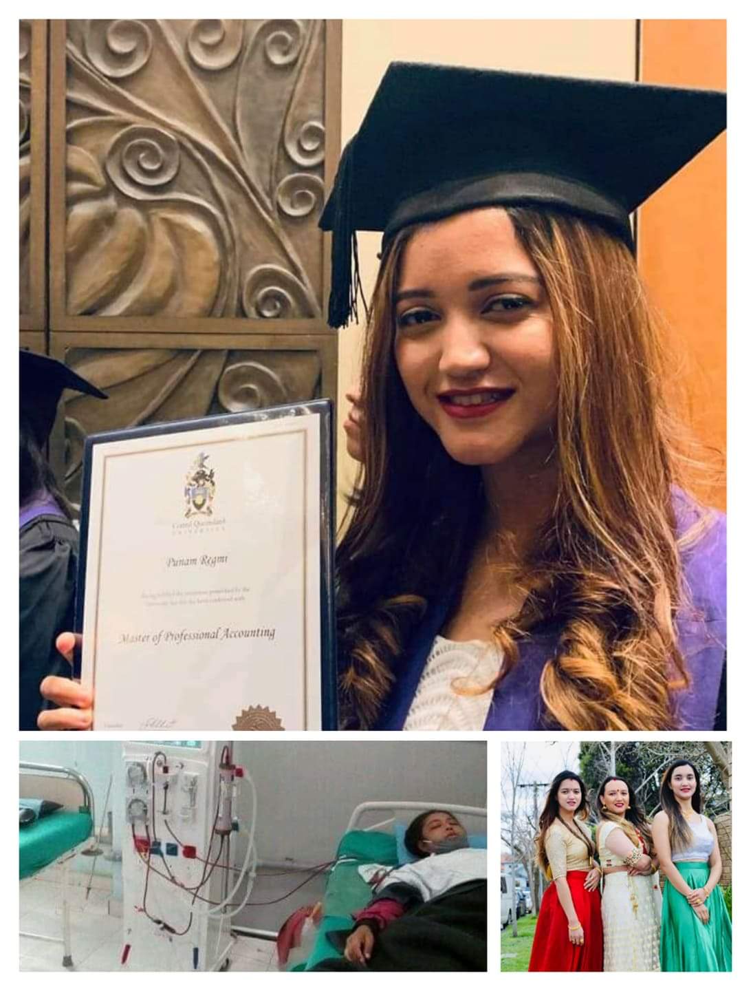 अष्ट्रेलियामा रहेका निलम, पुनम र सोनम रेग्मीले आफुहरु र साथीहरुको सहयोगमा संकलित रु १ लाख १४ हजार १ सय ११ रुपैयाँ सहयोग गरेका हुन् । सहयोग रकम सहयोगी निलम रेग्मीका बुवा भेषराज रेग्मीले मृगौला पिडित युवती अञ्जु बस्नेतको प्रभू बैंकमा रहेको खाता नम्बर १०५०११३६६४३०००१८ मा उक्त रकम जम्मा गरिदिएका हुन् । मृगौला पिडित युवती बस्नेत आर्थिक अभावमा उपचार गर्न नसकेपछि मृत्युसँग लडिरहेकी छन् । मृगौला पिडित युवतीको हाल काठमाडौंमा उपचार भइरहेको छ ।