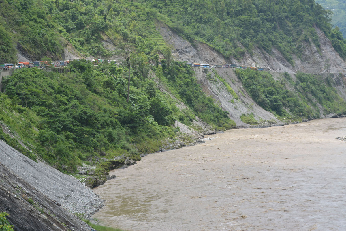 त्रिशूलीमा खसेको पिकअप पानीले डुबेर नदेखिने अवस्थामा रहेको छ ।
