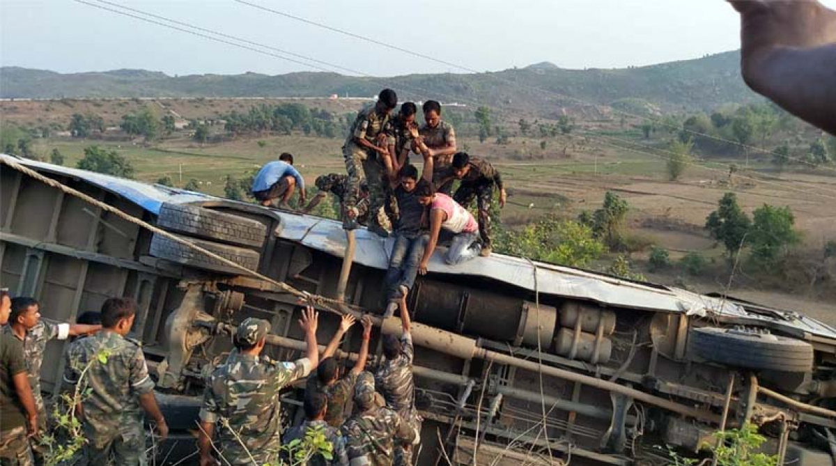 बाँके –बाँकेको राप्ती सोनारी गाँउपालिका–२ मुगुवा खोलामा बस दुर्घटना हुँदा १० जना सैनिक गम्भीर घाइते भएका छन् ।