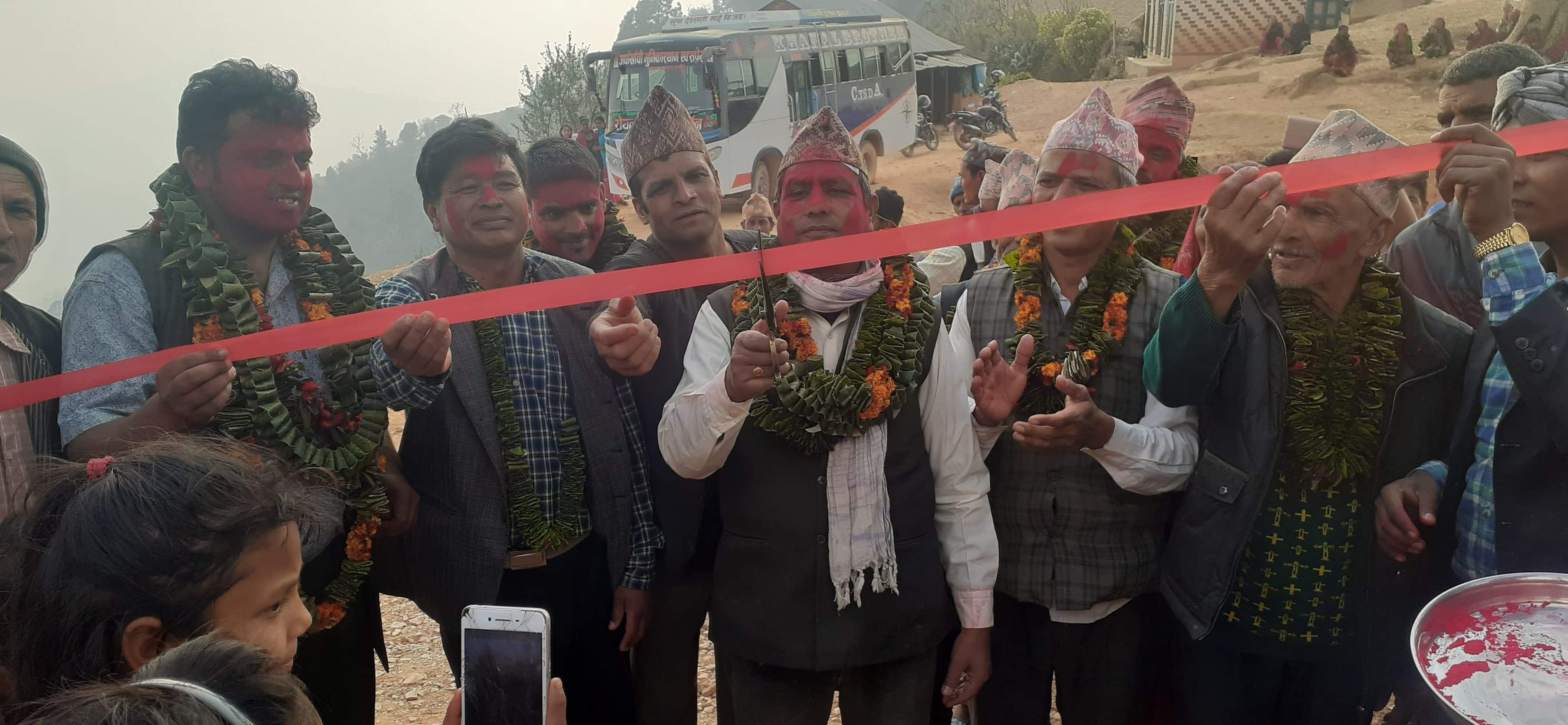 बस पुगेको खुसियालीमा स्थानीयले बाजागाजा सहित खुसियाली मनाउदै गाडी गाडीचालक र सहचालकलाइ फुल माला र अविर लगाइ स्वागत गरेका थिए ।