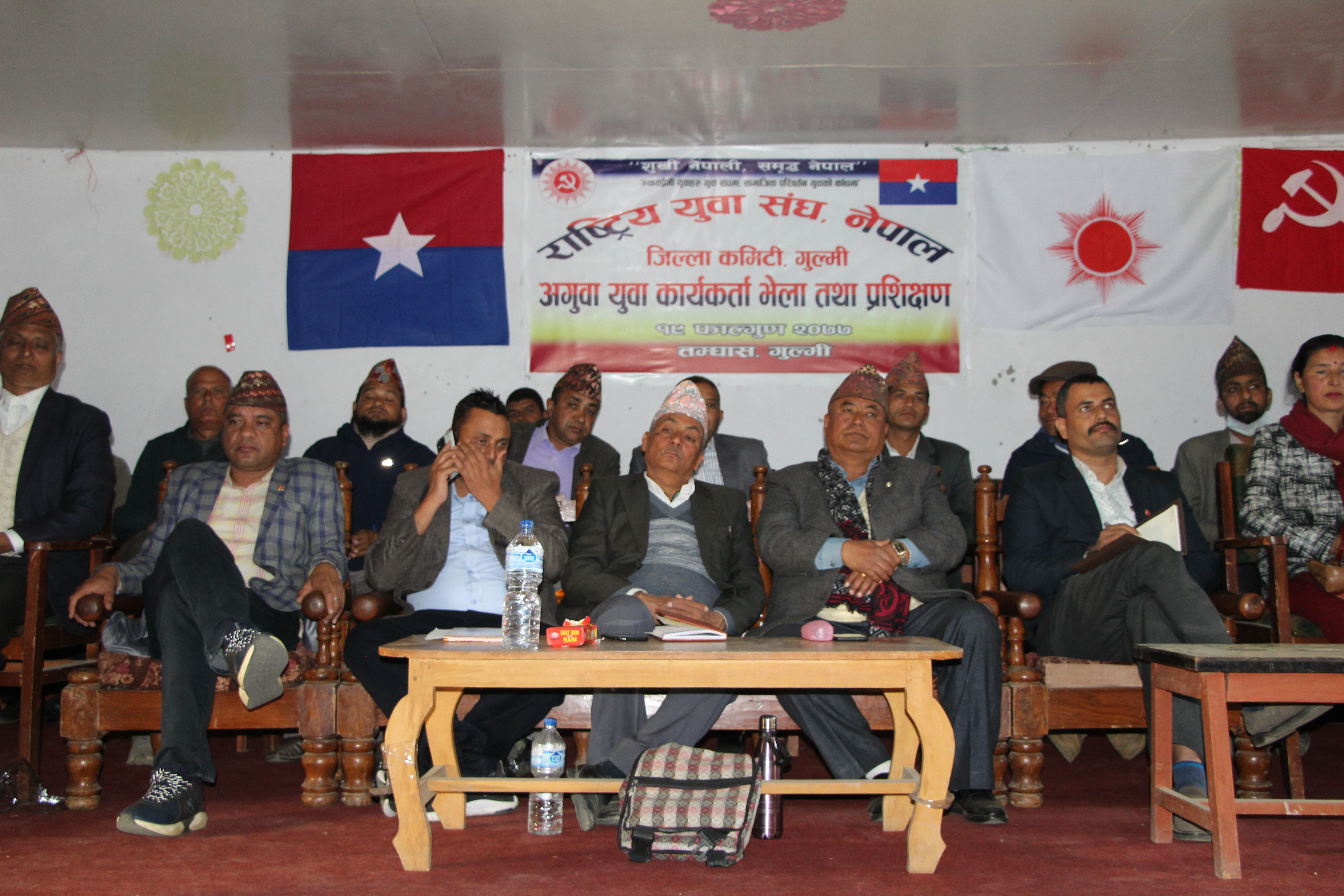 राष्ट्रिय युवा संघ गुल्मीको संयोजक मोहन प्रसाद पाण्डेको अध्यक्षता सम्पन्न कार्याक्रममा राष्ट्रिय युवा संघ केन्दिय सदस्य कपुर घिमिरेको घिमिरेको स्वागत मन्त्यव रहेको थियो ।