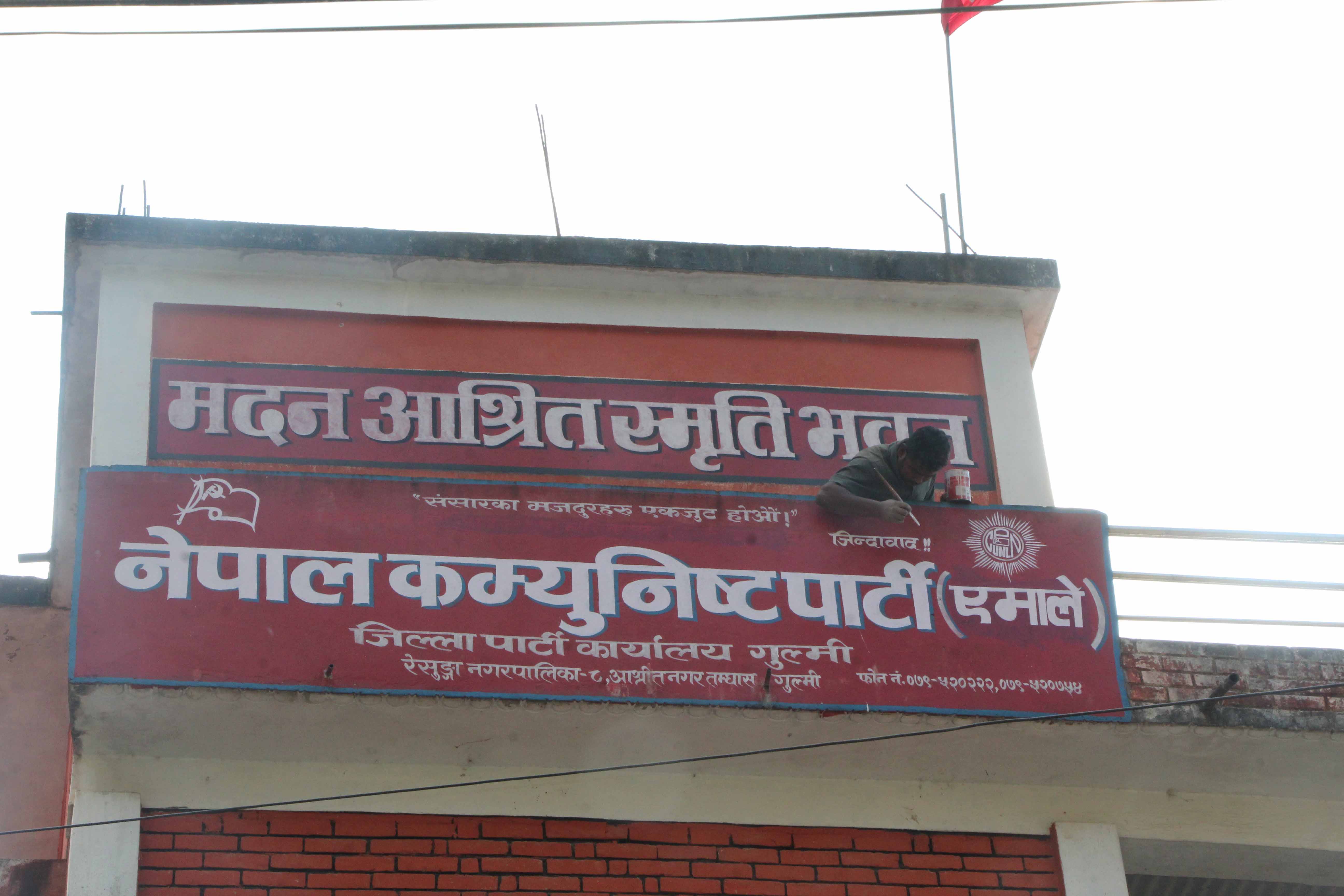 गुल्मीमा राखियो नेकपा एमालेको साइनबोर्ड