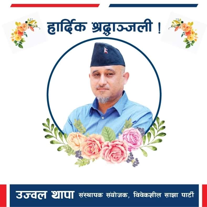 काठमाडौँ । विवेकशील साझा पार्टीले पार्टीका संस्थापक संयोजक तथा तत्कालीन विवेकशील नेपाली दलका संस्थापक अध्यक्ष उज्वल थापाको निधनमा दुःख व्यक्त गर्दै शोक प्रस्ताव पारित गरेको छ। पार्टी केन्द्रीय समितिको मंगलबार बसेको आकस्मिक बैठकले थापाको निधनमा गहिरो दुःख व्यक्त गर्दै शोक प्रस्ताव पारित गरेको हो । दुई साताअघि कोरोना सङ्क्रमित भएका थापाको ललितपुरस्थित मेडिसिटी अस्पतालमा उपचारका क्रममा अपराह्न ४ः२५ बजे निधन भएको हो । बैठकले थापाको स्मृति तथा सम्मानका लागि १३ औँ दिनको पुण्य तिथिमा प्रत्येक सदस्य र शुभचिन्तकहरूलाई कम्तीमा एउटा वृक्षारोपण गर्न पार्टीका सम्पूर्ण नेतृत्व पङ्क्ति र सदस्यहरूलाई आह्वान गरेको छ।