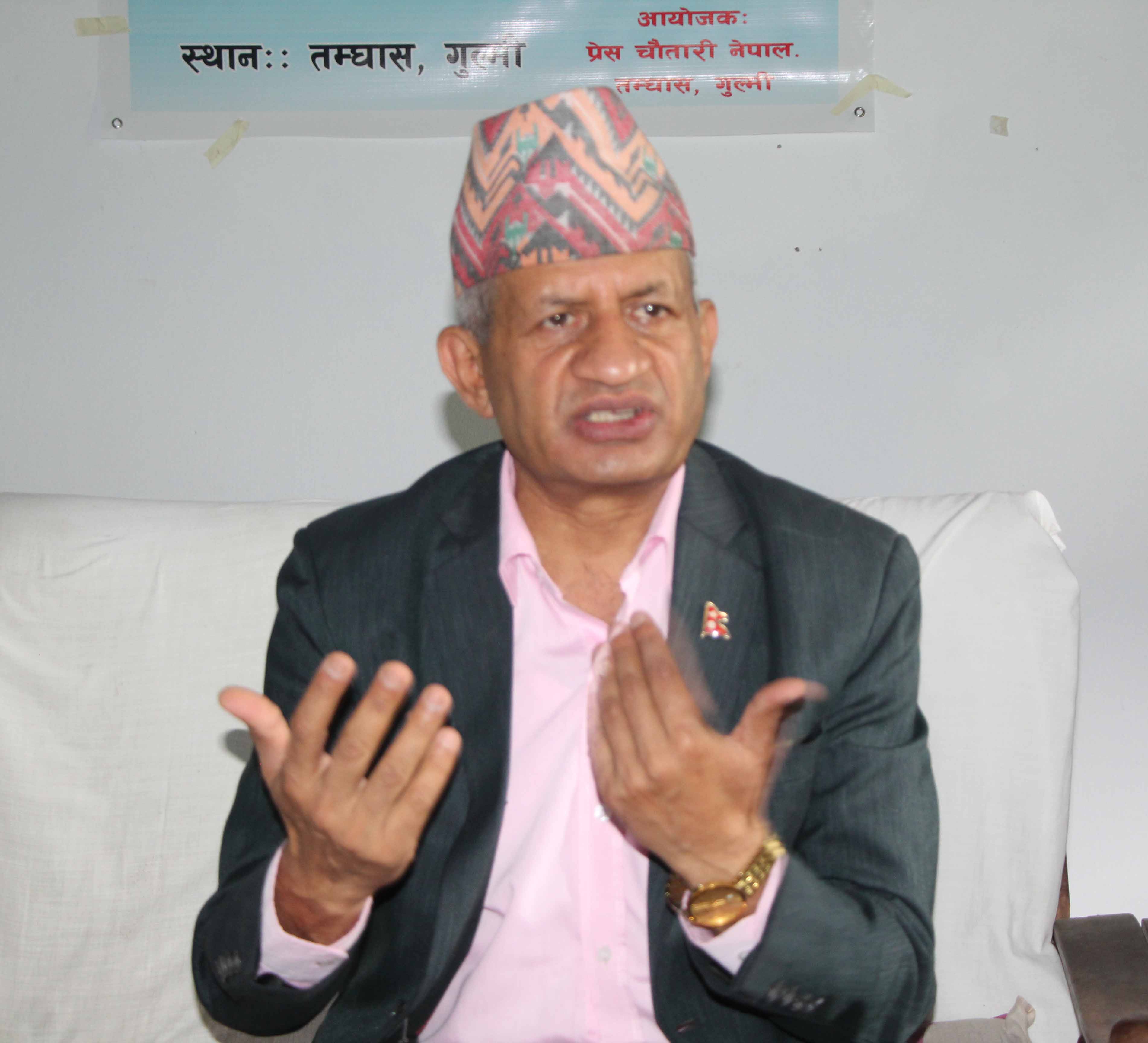 अनिल खत्री, गुल्मी । नेकपा एमालेका सचिब एबम् पूर्वमन्त्री प्रदीपकुमार ज्ञवालीले बर्तमान गठबन्धनको सरकार अशैद्धान्तिक भएकाले देश र जनताको हितमा काम गर्ने एजेन्डा नै नभएको बताएका छन् । प्रेस चौतारी नेपाल गुल्मीले आइतबार सदरमुकाम तम्घासमा आयोजना गरेको पत्रकार भेटघाट कार्यक्रममा ज्ञवालीले बर्तमान गठबन्धनको सरकारमा सरकारको देश र जनता प्रति काम गर्ने एजेन्डा नै नभएको बताए ।