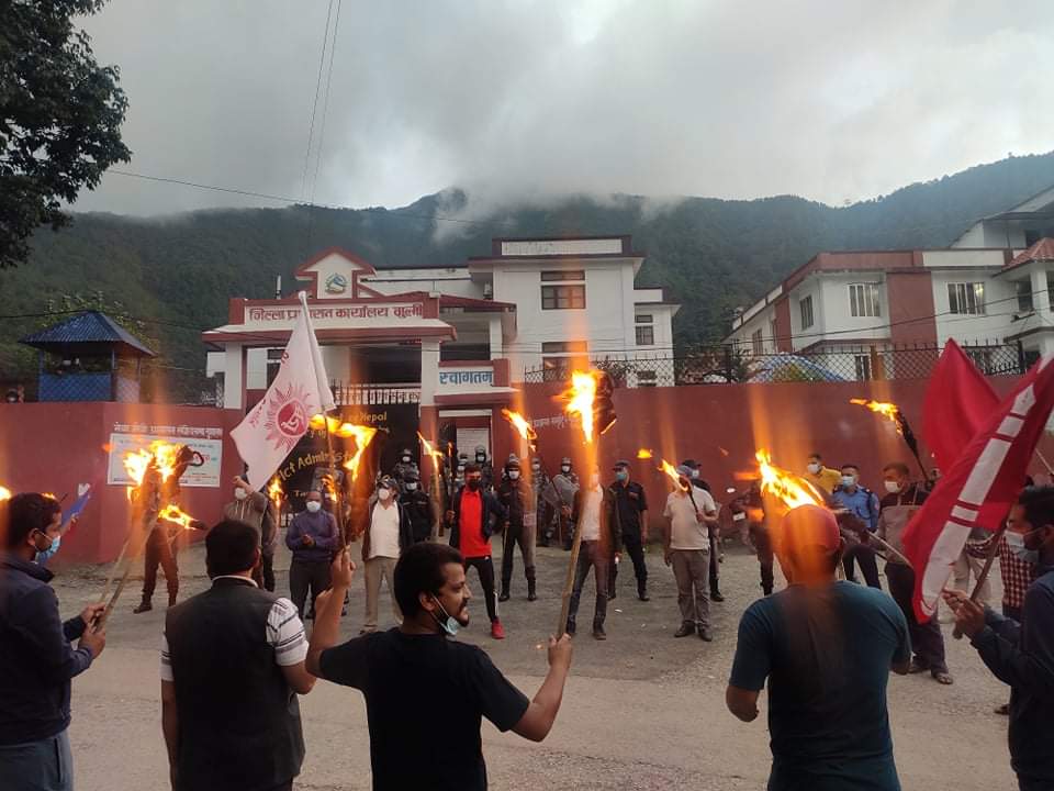 जुलुस जिल्ला प्रशासन कार्यालय गुल्मी अगाडी आएर नारा बाजी गरेका थिए । लोकतन्त्र मास्ने राके जुलुस सहित गरिएको प्रर्दशनमा अध्यादेश खारेज गर, परमादेश सरकार मुर्दावाद लगायतका नाराबाजी गरेका थिए ।