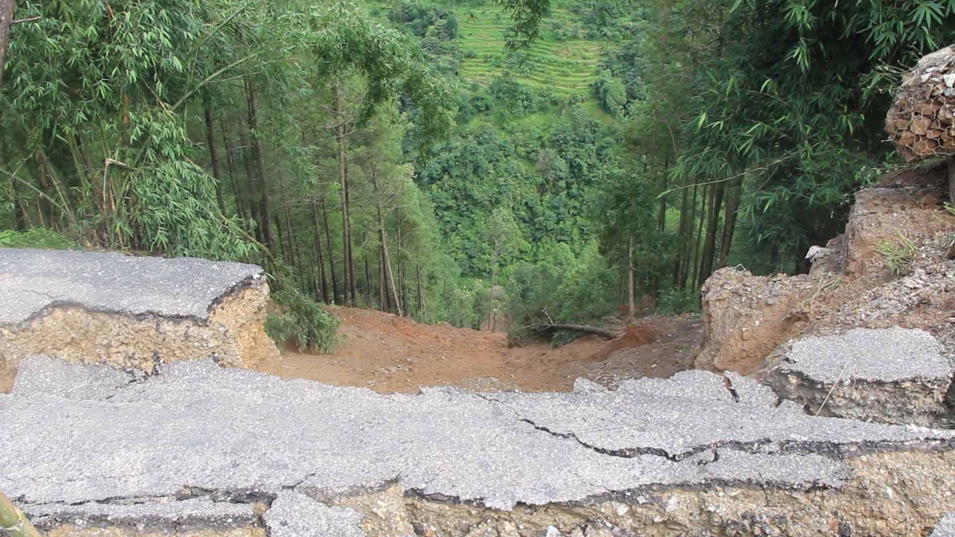पहिरोले सडक भत्कीएपछि सिङ्गो भिरनै देखिएकाले डरलाग्दो दृश्य देखिएको छ । पहिरोले सडकको अरु भाग पनि भत्कीने हो भनेर नजिकै रहेका घरका मानिसहरु त्रसित बनेका छन् ।