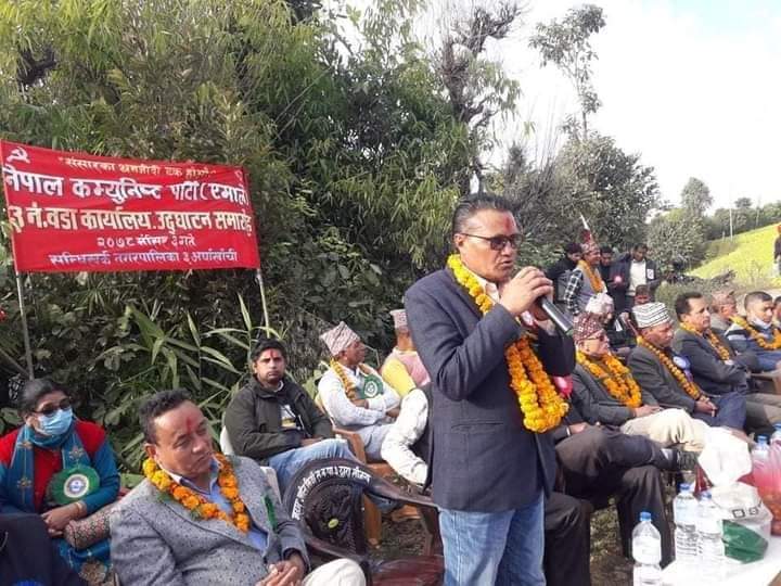 नेकपा एमाले सन्धिखर्क वडा नं. ३ कमिटीको बराहनेटामा कार्यालय उद्घाटन गर्दै उहाँले वैदेशिक शक्ति केन्द्रको ईसारामा परमादेश बाट निर्मित सरकार हरेक क्षेत्रमा असफल हुँदै गईरहेको दावी गर्नुभयो ।