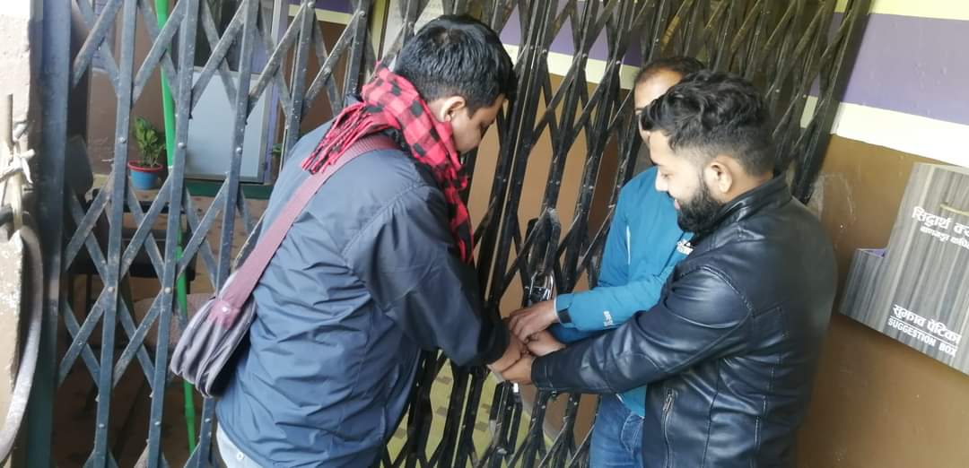 कपिलबस्तु । कपिलवस्तुका क्रियाशिल तीन विद्यार्थी संगठनले सिद्धार्थ क्याम्पस बुङ्चीमा तालावन्दी गरेका छन् । गएको कार्तिक ७ गते विभिन्न ६ बुँदे माग राखेर क्याम्पस प्रशासन समक्ष ज्ञापनपत्र बुझाएका विद्यार्थी संगठनले उक्त सहमति कार्यान्वयन नभएपछि आइतबार विहान क्याम्पस प्रशासनमा तालाबन्दी गरेका हुन् ।
