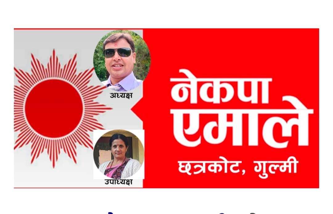 अमर पन्थ, गुल्मी । नेपाल कम्युनिष्ट पार्टी एमालेले छत्रकोट गाउँपालिकाको अध्यक्ष पदमा रामप्रसाद पाण्डेलाई उमेद्वार चयन गरेको छ । एमाले छत्रकोट सहइन्चार्ज तथा जिल्ला कमिटी सदस्य रहेका पाण्डेलाई सर्वसम्मत रुपमा अध्यक्ष पदको उमेद्वार चुनिएको जिल्ला कमिटी अध्यक्ष बालसिंह काउछाले जानकारी दिनुभयो ।