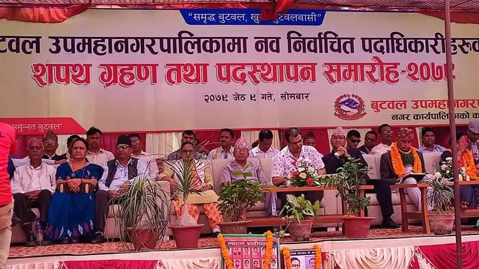 बुटवल उपमहानगरपालिकामा सोमबार नगरप्रमुख खेलराज पाण्डेय र उपप्रमुख सावित्रा अर्यालले पदभार ग्रहण गरे लगत्तै नगरपालिकामा प्रस्ताव भइआएका यी दुई निर्णय सदर गरेका हुन् । त्यस्तै रुपन्देहीको देवदह नगरपालिकाका नवनिर्वाचित नगर प्रमुख ध्रुवप्रसाद खरेल र उपप्रमुख विद्यालक्ष्मी गुरुङले पदभार ग्रहण गर्दै दुईवटा निर्णयमा हस्ताक्षर गरेका छन् ।