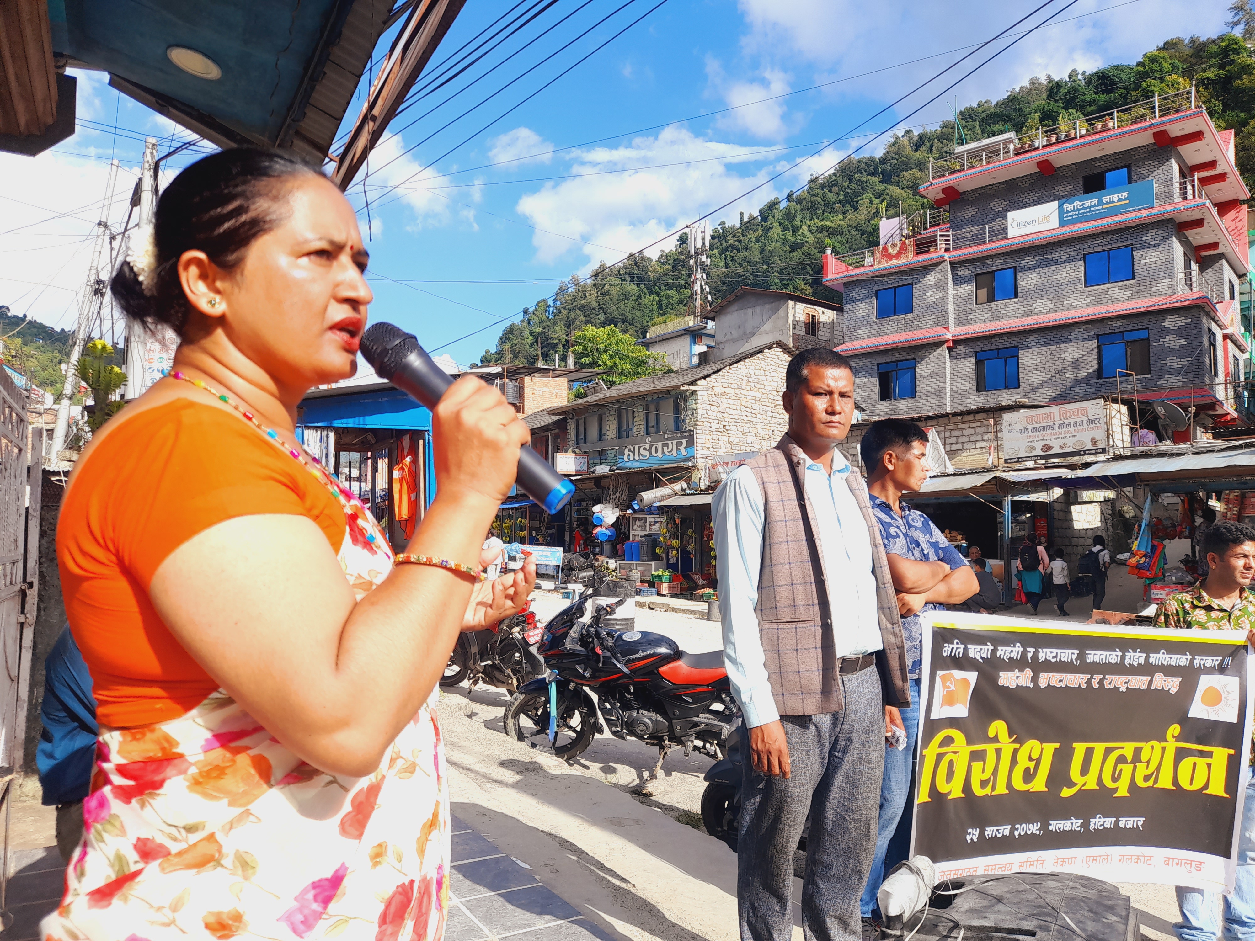 एमाले संयुक्त जनसंगठन समन्वय समितिको आयोजनामा अति बढ्यो महँगी र भ्रष्टाचार, जनताको होईन माफियाको सरकार भन्ने मुल नाराका साथ गलकोट नगरपालिकाको केन्द्र हटिया बजारमा गठबन्धन सरकारले बढाएको महँगी, भ्रष्टाचार, राष्ट्रघातको विरुद्धमा विरोध प्रदर्शन कार्यक्रम गरेको नेकपा एमालेले जनाएको छ ।