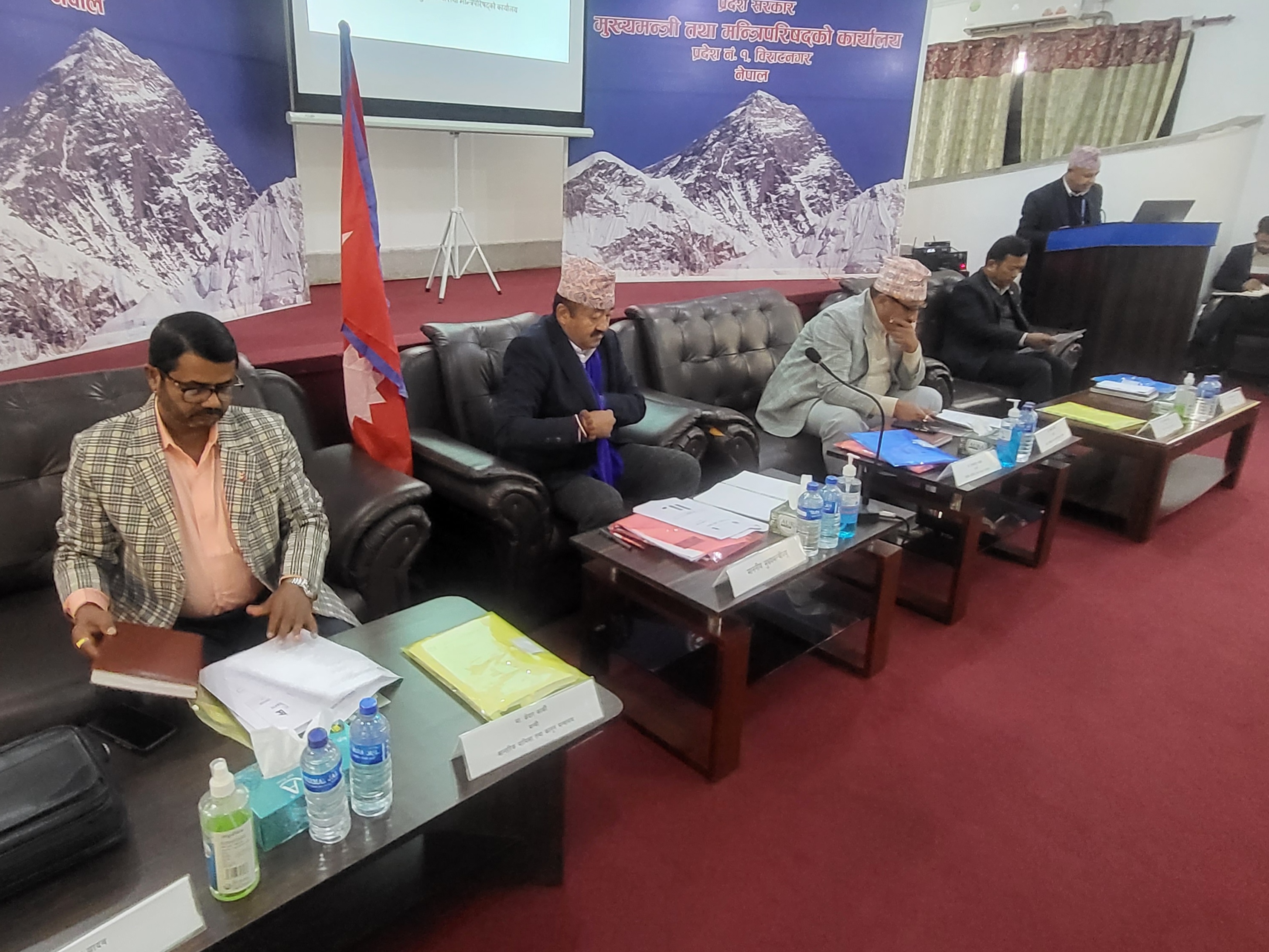 मुख्यमन्त्री तथा मन्त्रिपरिषद् कार्यालयद्वारा आयोजित चालु आर्थिक वर्ष २०७९÷०८० को प्रथम चौमासिक प्रगति समीक्षा कार्यक्रममा प्रदेश सरकारअन्तर्गतका विभिन्न १७ वतटा मन्त्रालय तथा निकायको प्रगति विवरण प्रस्तुत गरिएको थियो । विभिन्न मन्त्रालय तथा निकायबाट प्रगति विवरण प्रस्तुत भएपछि प्रदेश नं. १ का निमित्त प्रमुख सचिव किशोरकुमार चौधरीले प्रदेश सरकारको समग्र अवस्था र आगामी दिनमा गर्नुपर्ने कामका विषयमा प्रकाश पार्नुभएको थियो ।