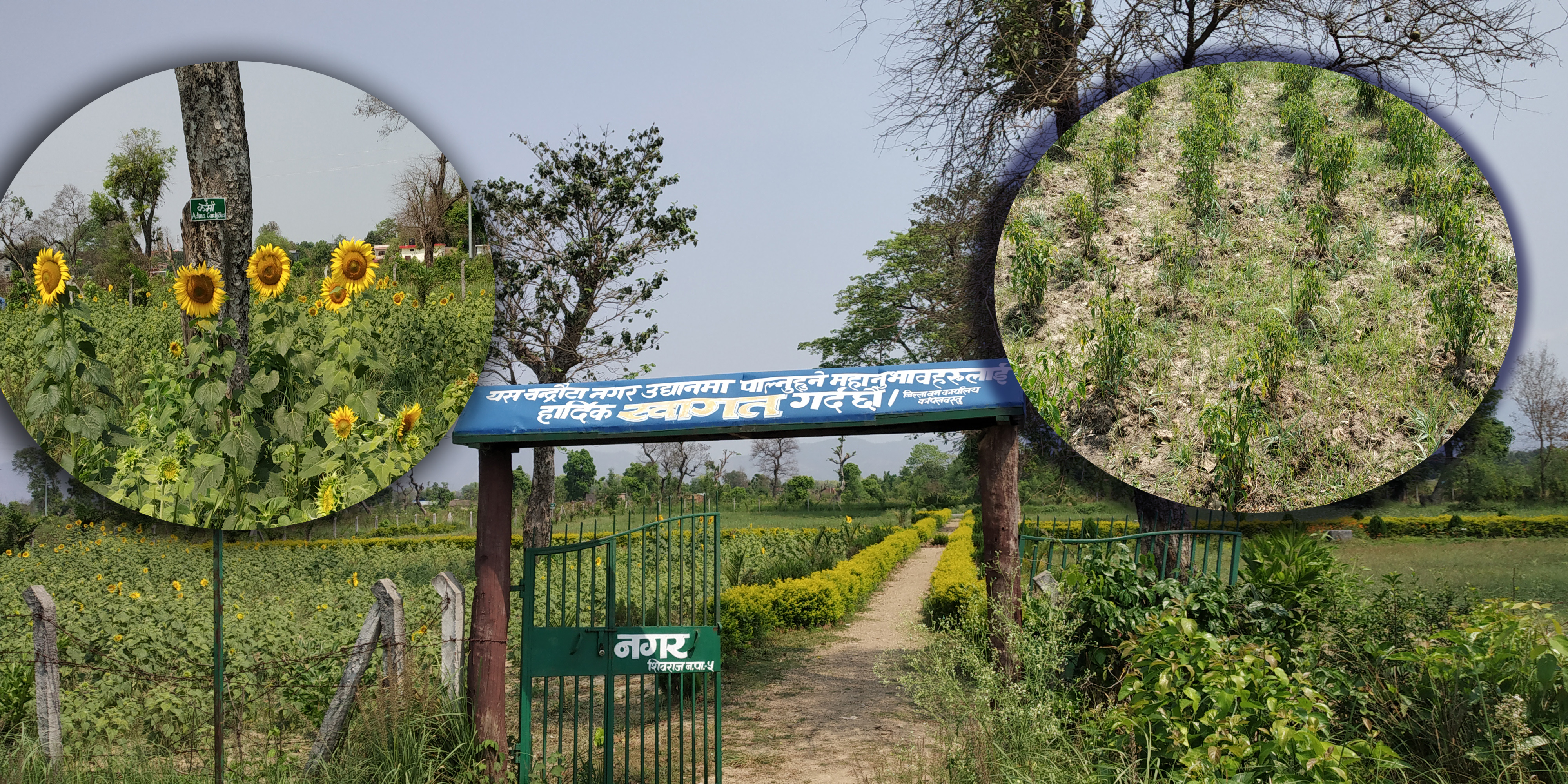 चन्द्रौटा नगर उद्यानमा खुसार्नी र सूर्यमुखीको खेती
