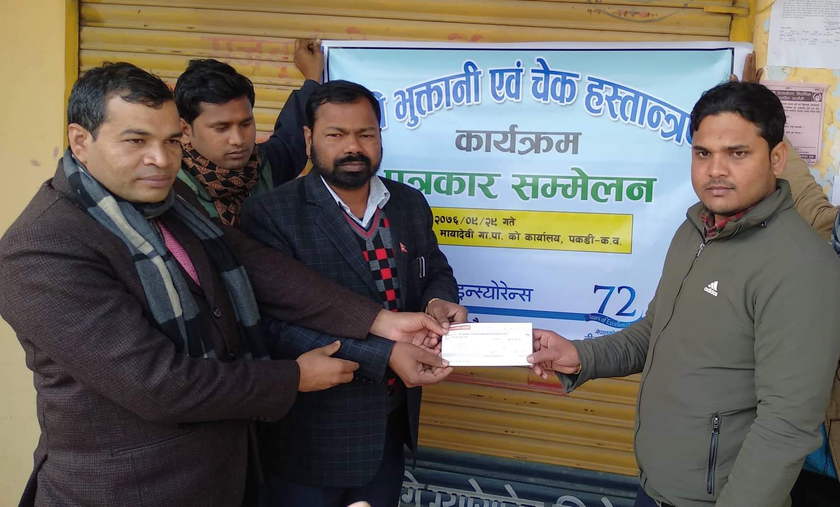 नेपाल इन्स्योरेन्स कम्पनीबाट ४६ लाखको दावी भुक्तानी