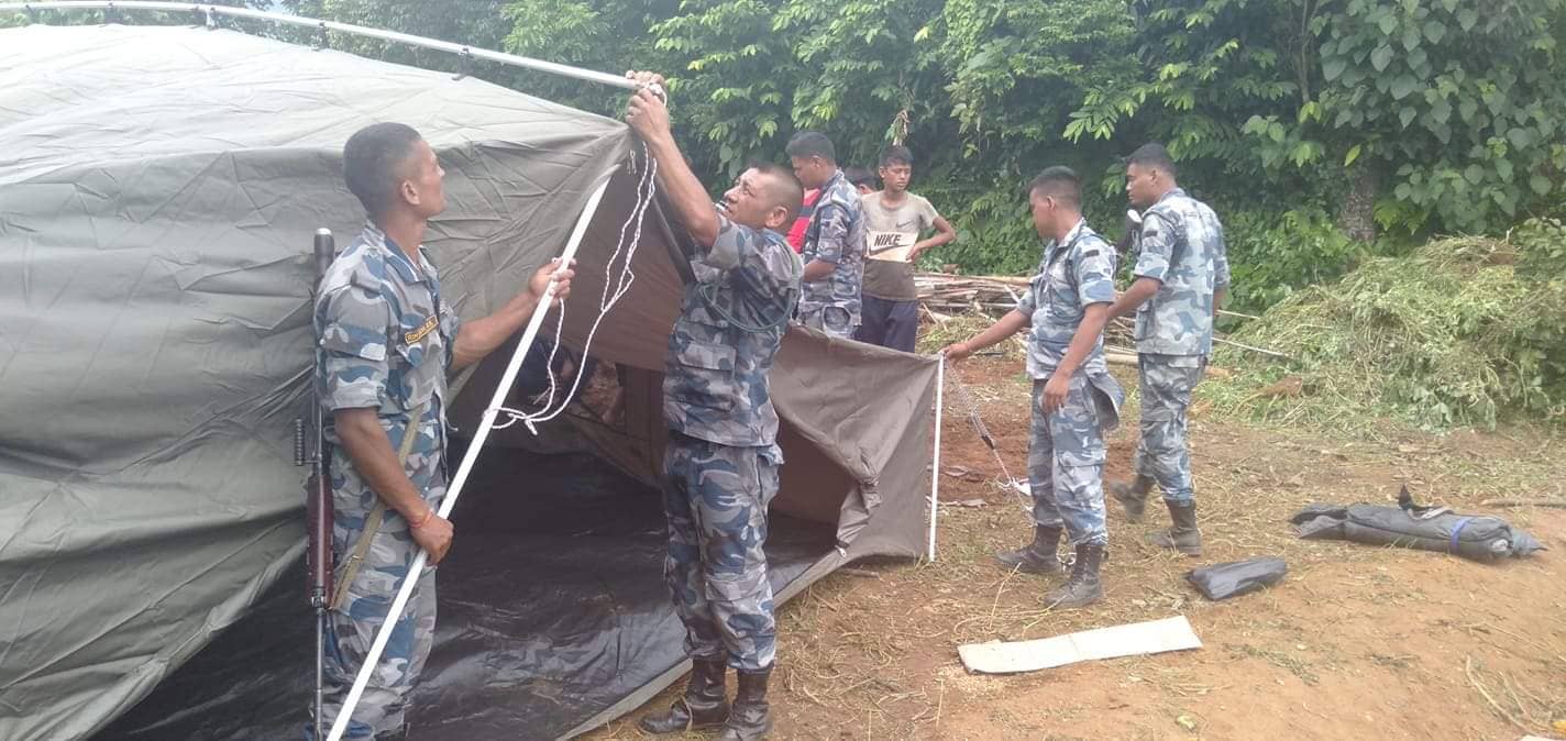 गुल्मीमा शसस्त्र प्रहरीद्धारा अस्थायी आवास निर्माण