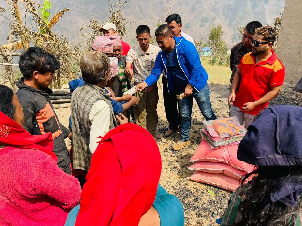 अग्निपिडितलाई नगद र खाद्यान्न बितरण, सबैसँग सहयोगको