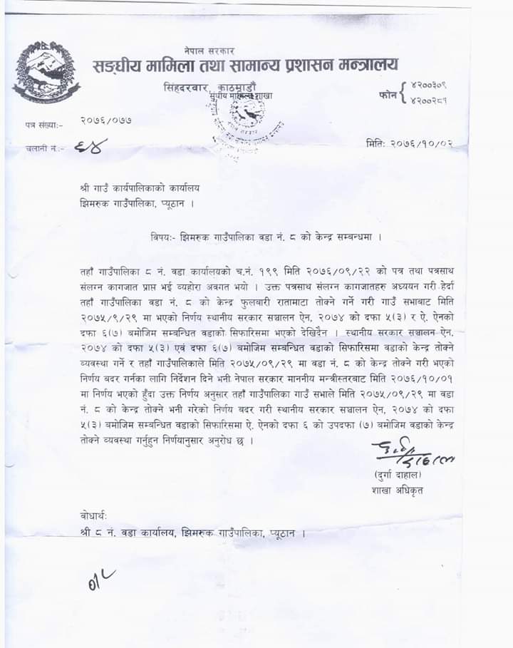 झिमरुक ८ को केन्द्रका कुरा : गाउँपालिकाकाे