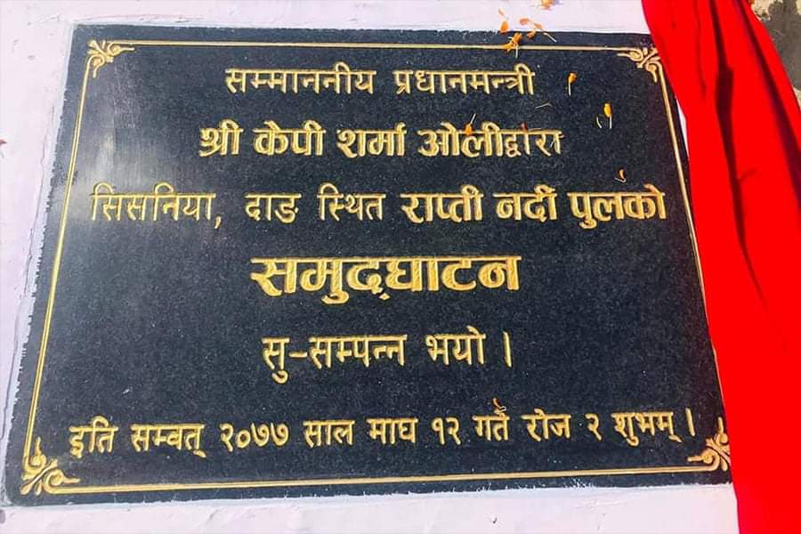 प्रधानमन्त्रीले उदघाटन गरेको राप्ती पुलको शिलालेख तोडफोड