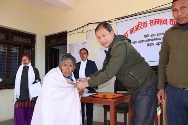 प्यूठान नगरपालिकामा जेष्ठ नागरिकहरुलाई न्यानो कपडा वितरण