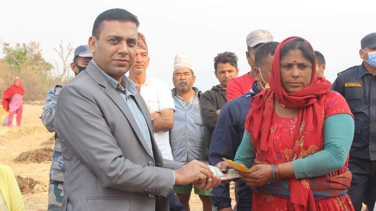 प्रमुख जिल्ला अधिकारीको नेतृत्वमा कोचिबाङका अग्नी पिडितलाई