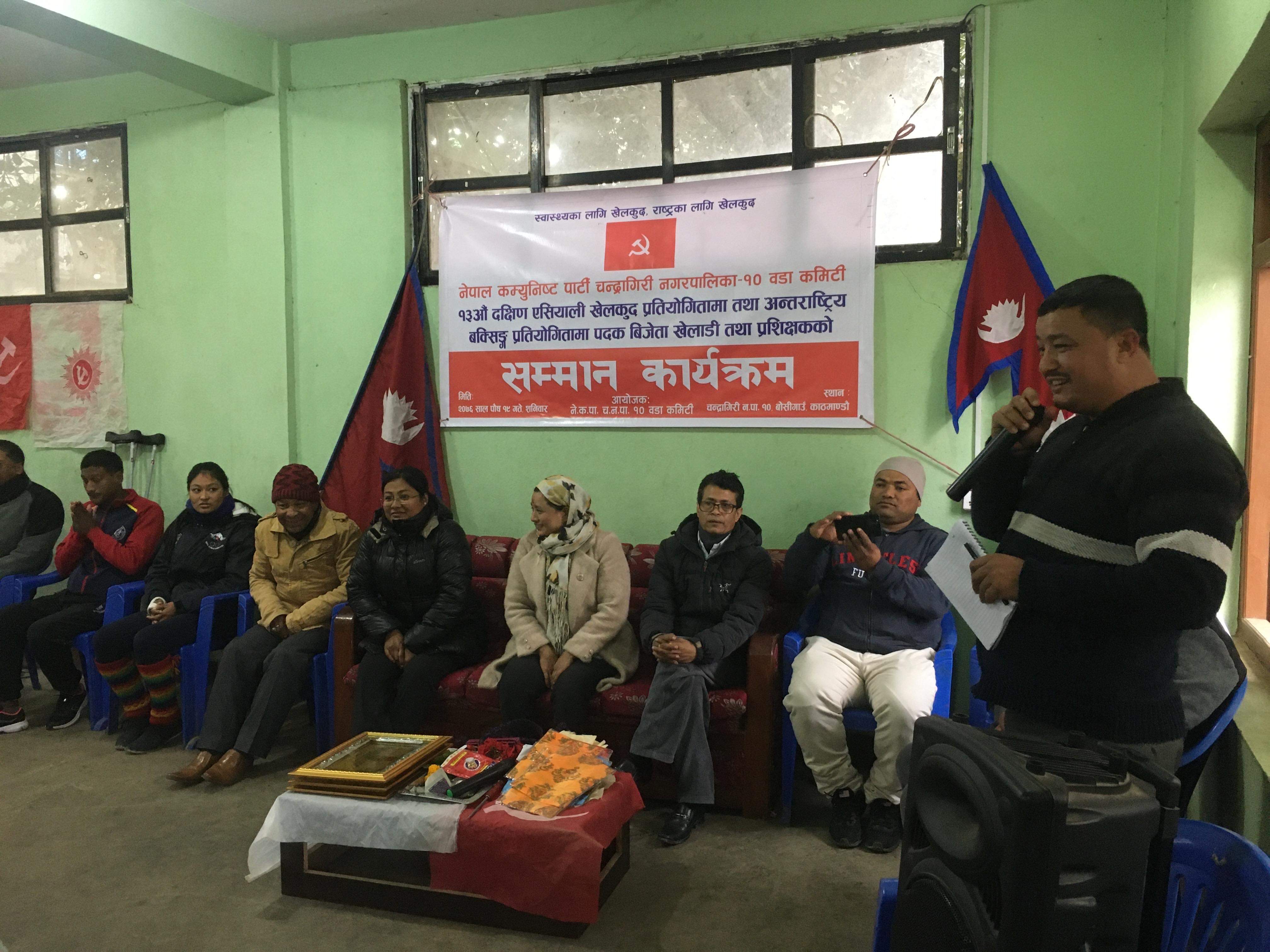 नेकपा चन्द्रागिरी-१० कमिटीद्धारा खेलाडीलाई सम्मान