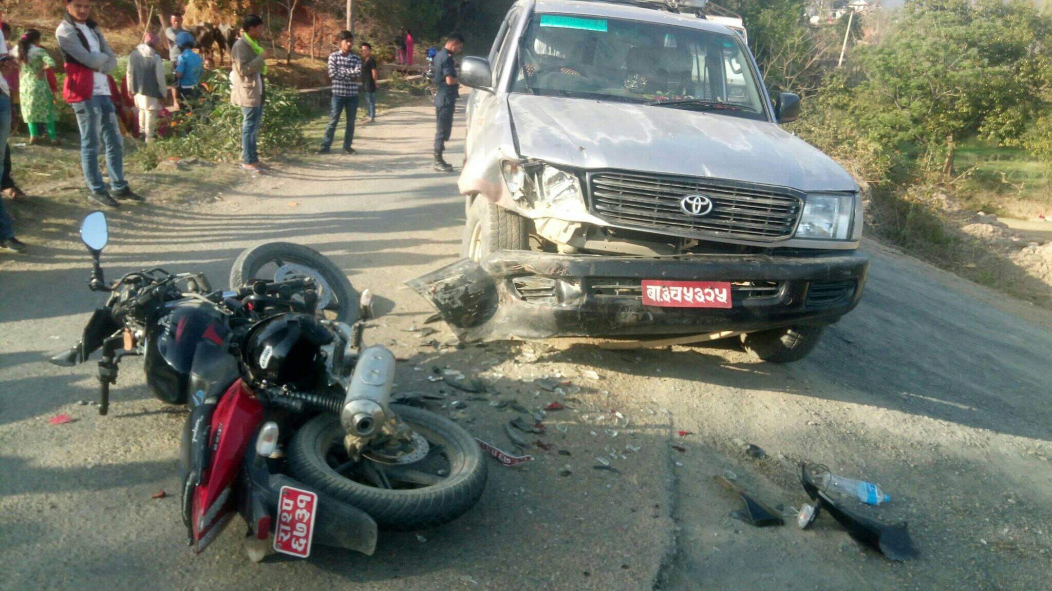 जिप र मोटरसाइकल एक अापसमा ठाेक्किदा एकजना